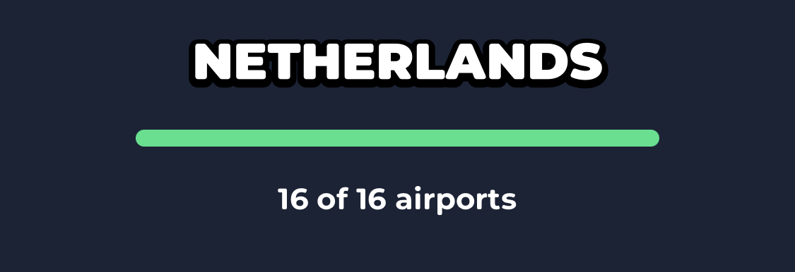 Es gibt derzeit 16 Airports bei Skycards in den Niederlanden, die gesammelt werden können. Completed: 29. September 2025